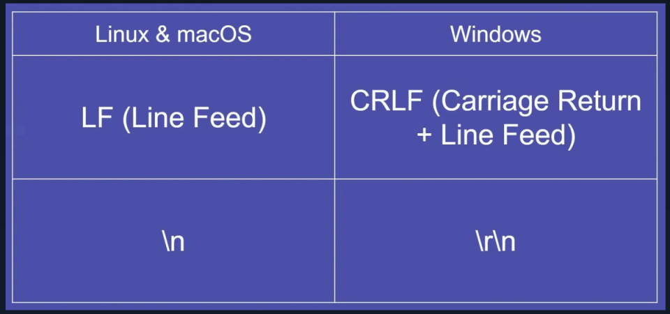CRLF(Carriage Return + Line Feed) as the default line ending. -